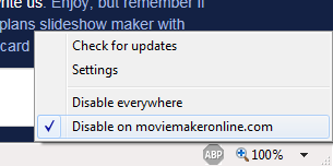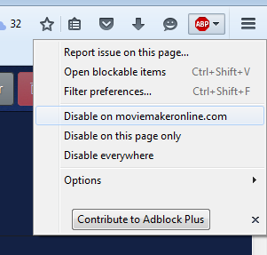 Besplatni blokator oglasa isključuje se na stranici moviemakeronline.com na sljedeći način: